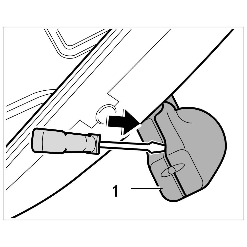 4. Carefully unclip the cover -1- from the rain sensor from above using a narrow screwdriver.