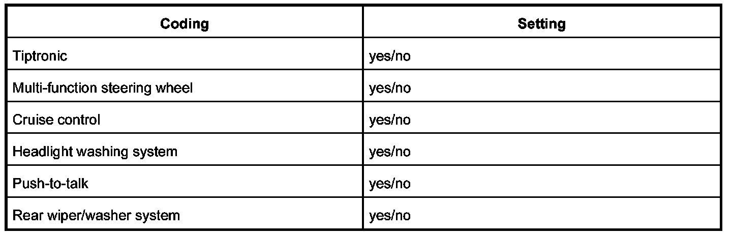 14. Change to the Coding menu and compare the coding with the vehicle equipment. Recode if necessary.