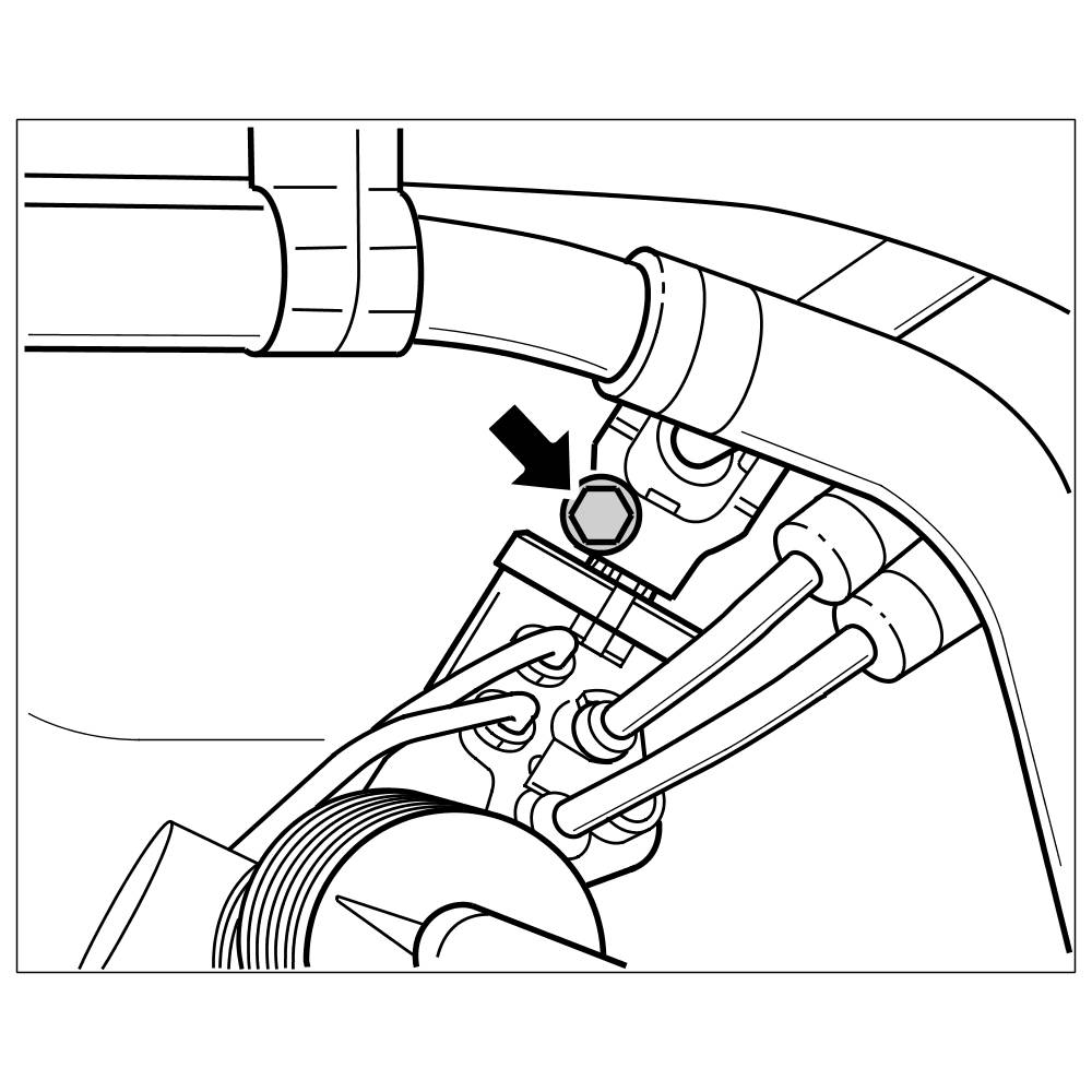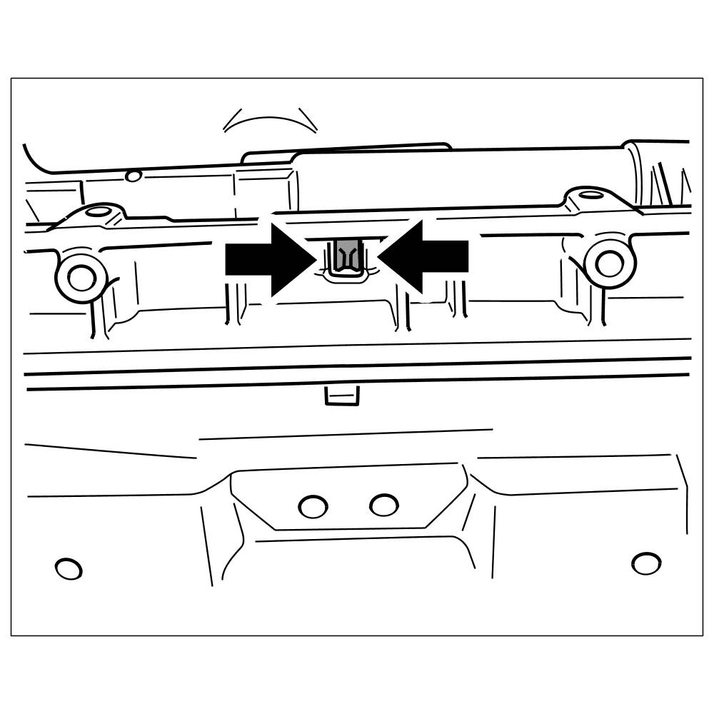 2. Loosen support for coolant pipes (screwed on 4x) and press together the support for coolant pipes in the centre -arrows- and unclip.