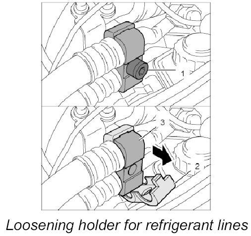 3. Loosen holder for refrigerant lines.