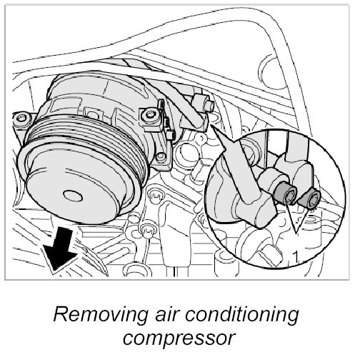 Work steps for blocked/seized up air conditioning compressor