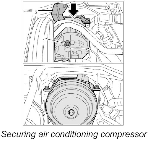 6.3. Remove air conditioning compressor in -direction of arrow-.