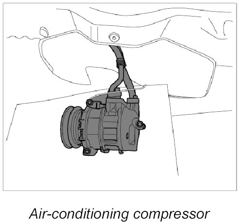 INFORMATION: After removal, place the air-conditioning compressor on a suitable protective support (e.g. foam, neoprene, etc.).