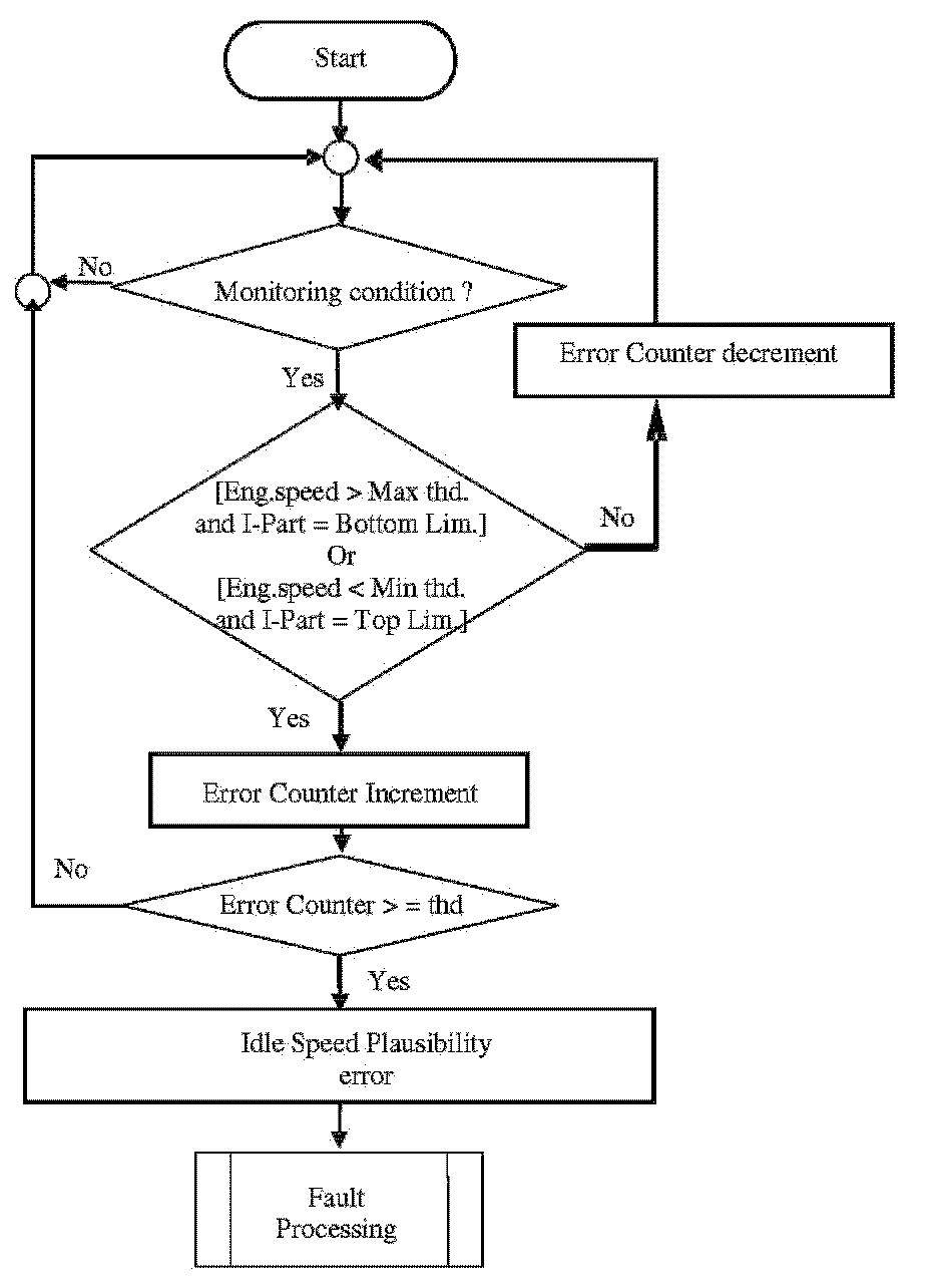 This diagnosis detects the stability of the idle speed. If the commanded idle speed and the actual idle speed is not within a calibrate able value, above or below commanded, in spite of an activated idle speed controller the idle speed is considered to be out of range.