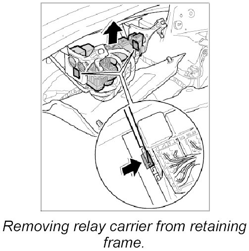 1. Release relay carrier at retaining frame on both left and right side and remove the relay carrier from the bracket.
