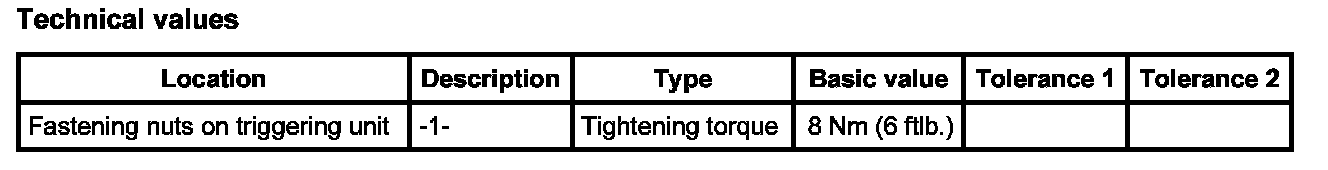 1. Position triggering unit, move both ground straps -2- on the left fastening bolts and screw down with the three fastening nuts -1-. Tightening torque: 8 Nm (6 ftlb.)
