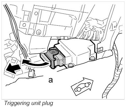 - The airbag triggering unit must not be removed with the connector still plugged in.
