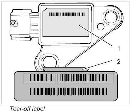 INFORMATION: If a new component (e.g. sensor, airbag control unit, airbag unit) of the airbag system has to be installed, the new component will be supplied with a barcode sticker (tear-off label).