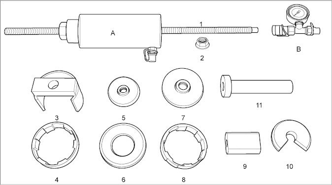 Tool overview for chassis subframe bearings