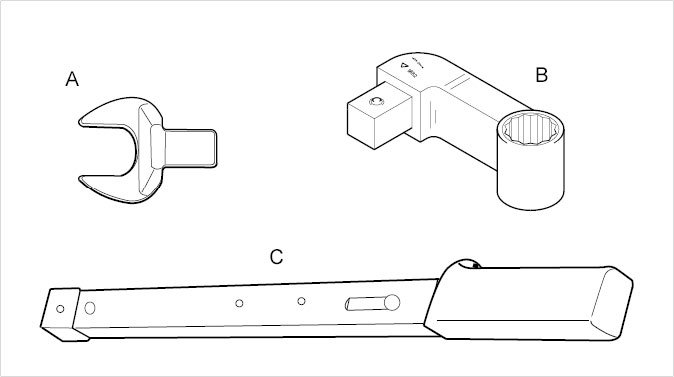 B - eccentrics at the front axle to the specified tightening torque. Can also be used for loosening.
