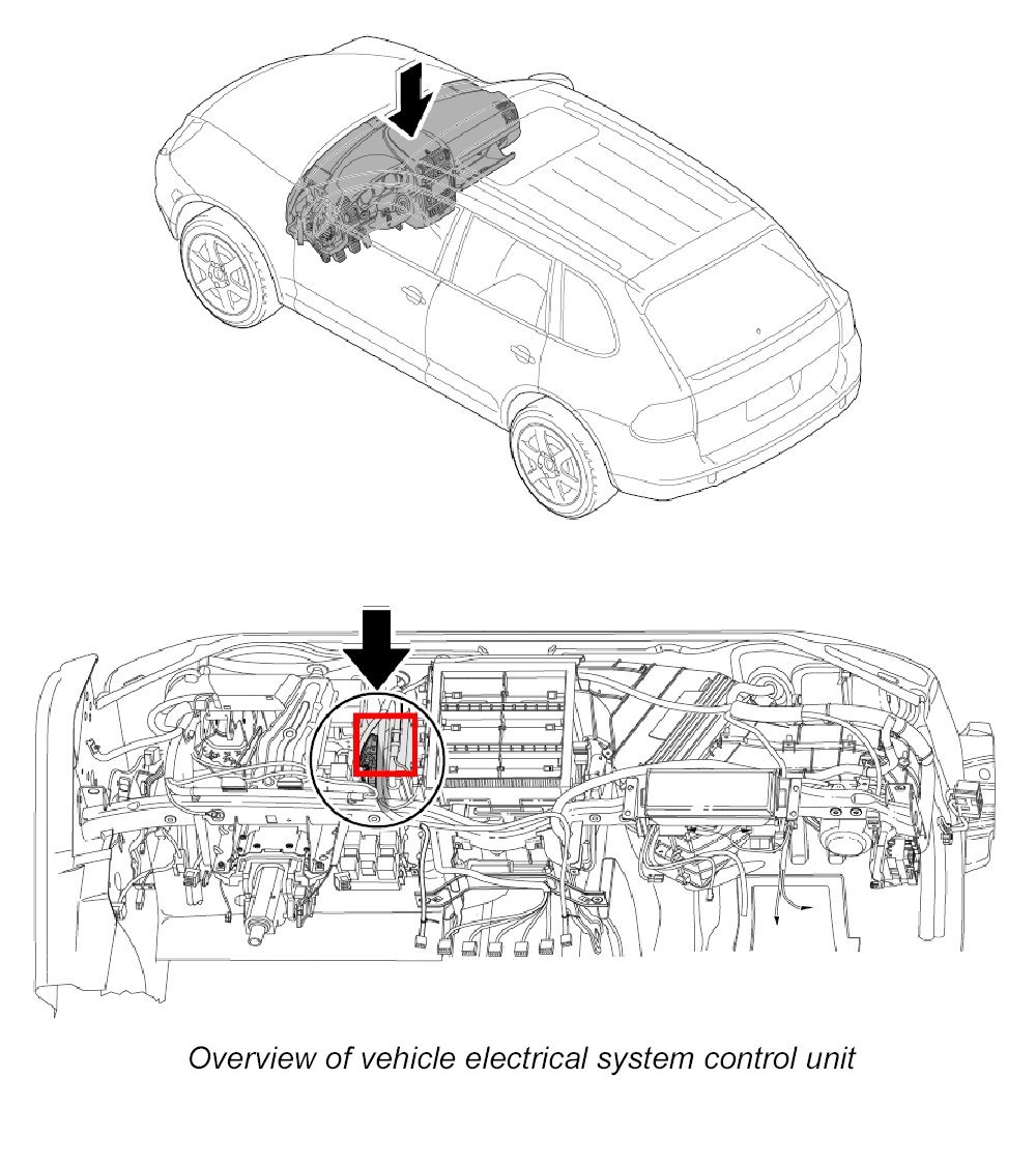 - If the control unit for the vehicle electrical system is replaced, it must be programmed using the Porsche System Tester. This will ensure that the control module is taught for the relevant vehicle, country version and equipment.
