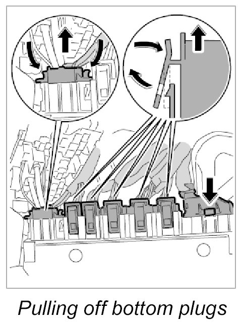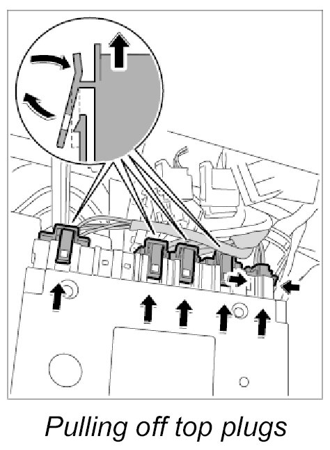 3. Release and remove bottom plugs. Pull control unit completely out of the holder.
