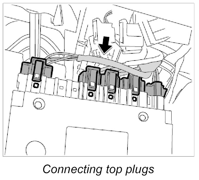 3. Push control unit upwards into the holder, making sure it engages. Make sure the electrical leads are not pinched.