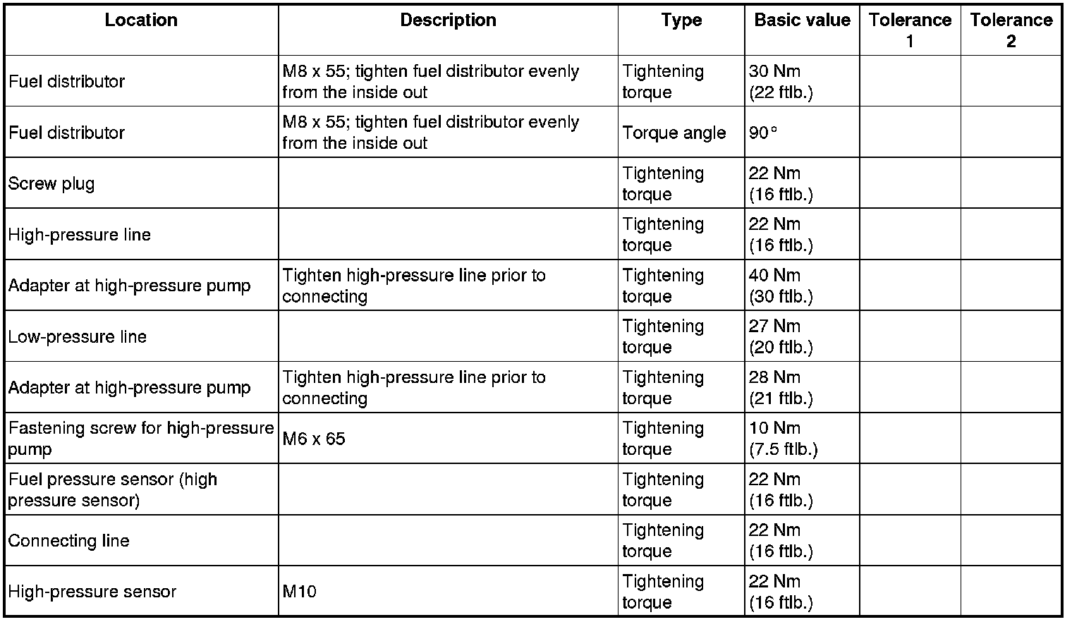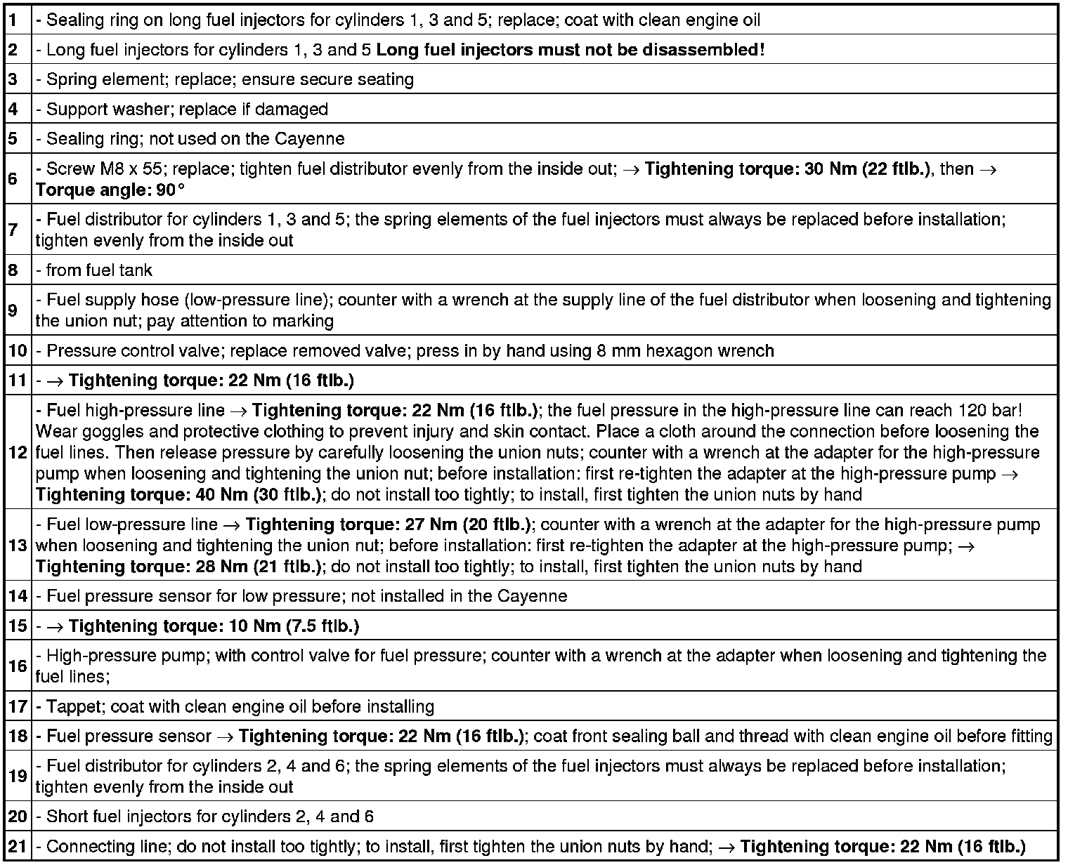 -> The high-pressure distribution pipe (rail) or other fuel feed components in the high-pressure area must always be completely removed.