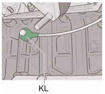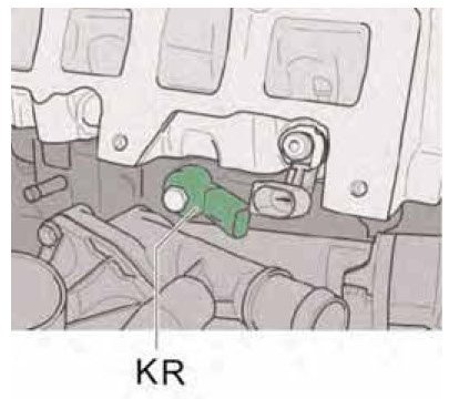 One knock sensor is bolted to the crankcase on the left -KL- and another on the right -KR-. They detect knocking in individual cylinders. To prevent knocking, the cylinder selective knock control system monitors the electronic ignition timing control system. Based on the signals from the knock sensors, the DME control unit adjusts the ignition timing angle for the knocking cylinder until the knocking stops.