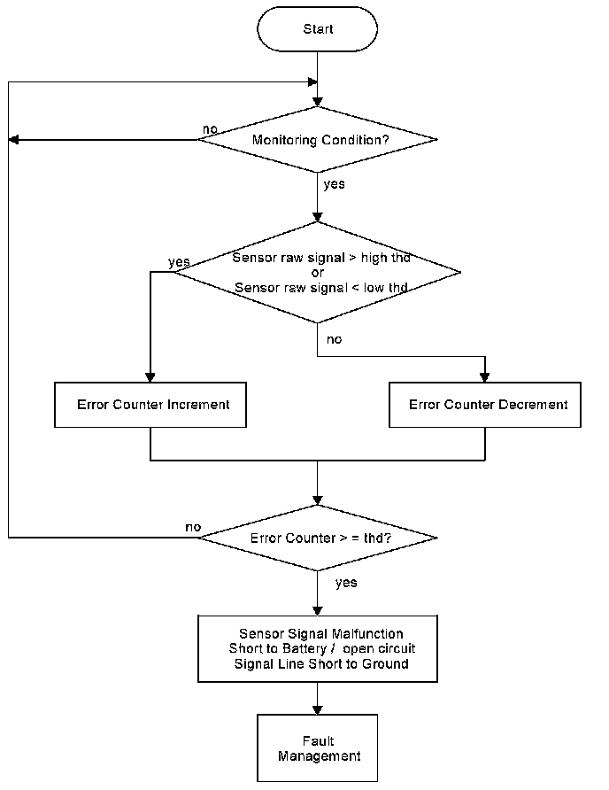 Sensor signals out of a defined range are regarded as circuit malfunctions shorted to battery plus, shorted to ground or open circuit.