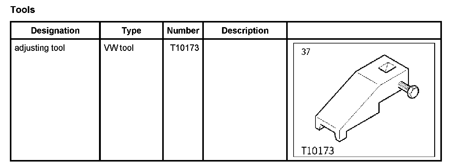 6. Position special tool adjusting tool T10173 on shaft and fix with screw -arrow-.