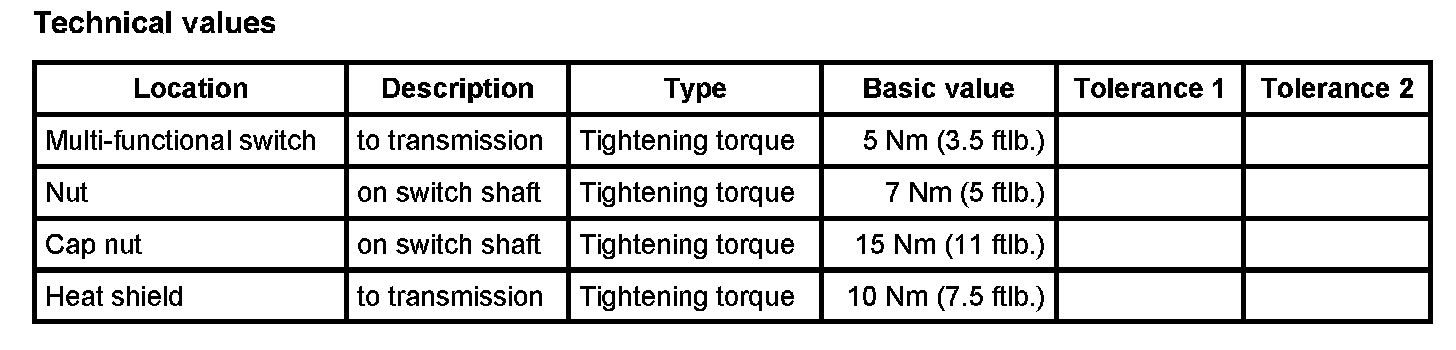 8. Install cap nut, cap, nut with tab washer and rubber washer on the multi-functional switch. - Tightening torque: 7 Nm (5 ftlb.) - Tightening torque: 15 Nm (11 ftlb.)