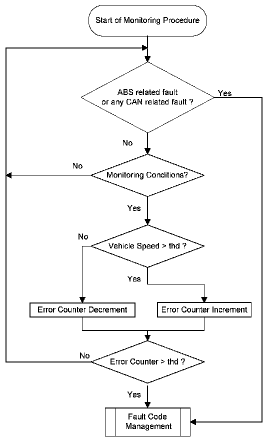 Provided no ABS and/or CAN related faults are present, the vehicle speed signal will be checked against an upper threshold. Exceeds the VS signal the upper threshold the error counter will be incremented. Exceeds the error counter the threshold the failure management will be triggered.