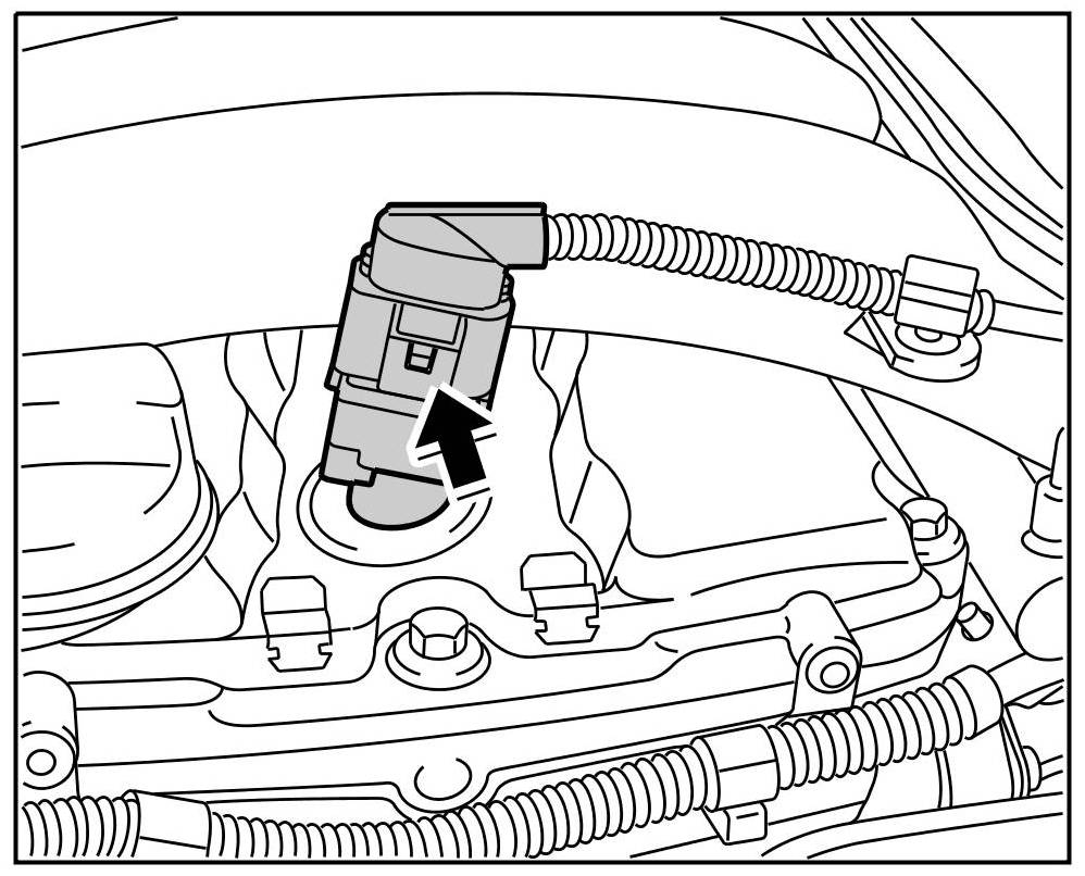 2. Separate the six bar ignition modules from the wire harness. To do this, press the connectors down slightly, release and remove them using the assembly tool T10118 or a suitable aid (e.g. an angled piece of wire). -1-
