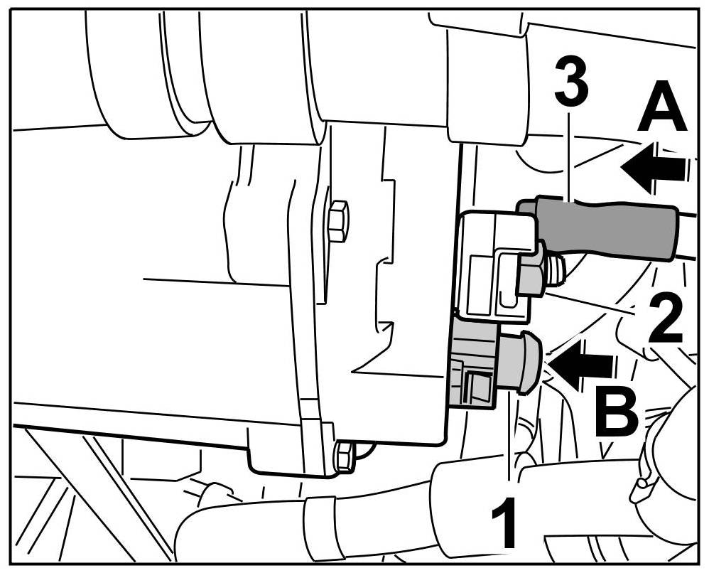 1. Release connector -1- ( -arrow A- ) and pull it off -arrow B-.