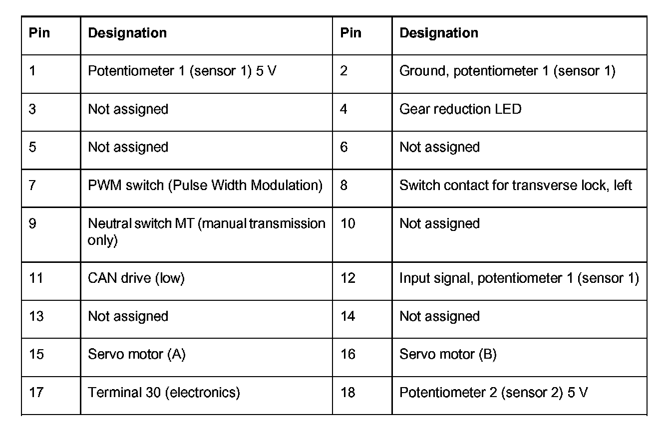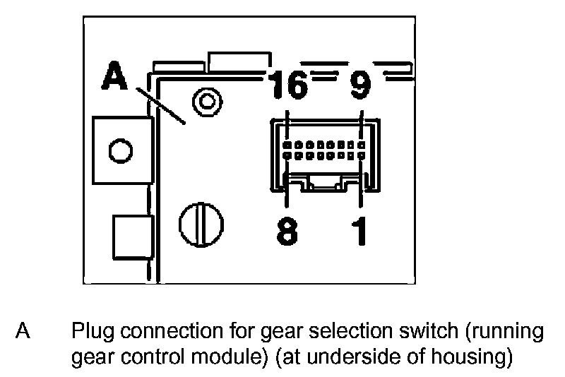 Gear selection switch connector assignment (running gear control module), 16-pin