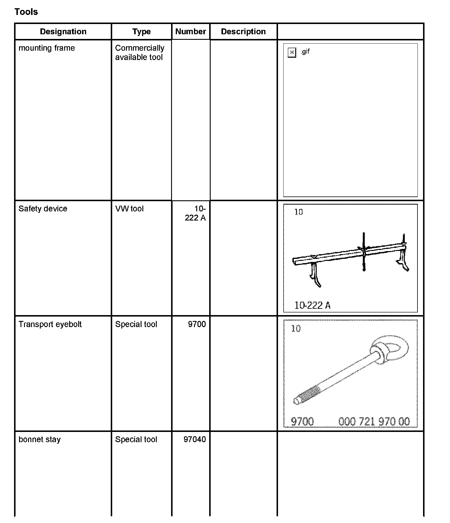 ^ In Point 4, the transport eyebolt 9700 cannot be screwed in on 2nd generation V8 vehicles. There are perforated plates on the engine for transporting and raising it to the safety device.
