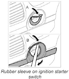 1. Carefully lift rubber sleeve on the ignition starter switch -arrow A- using a screwdriver, for example, and remove it.
