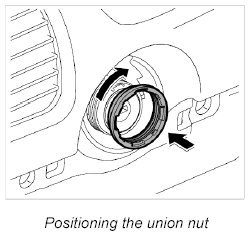 2. Position ignition starter switch in the dashboard. Position union nut, re-adjust switch and tighten union nut using wrench T10152. - Tightening torque: 1 ftlb.