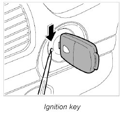 1. Push a ball-point pen, for example, into the opening next to the key, turn the ignition key to position 0 and pull out.