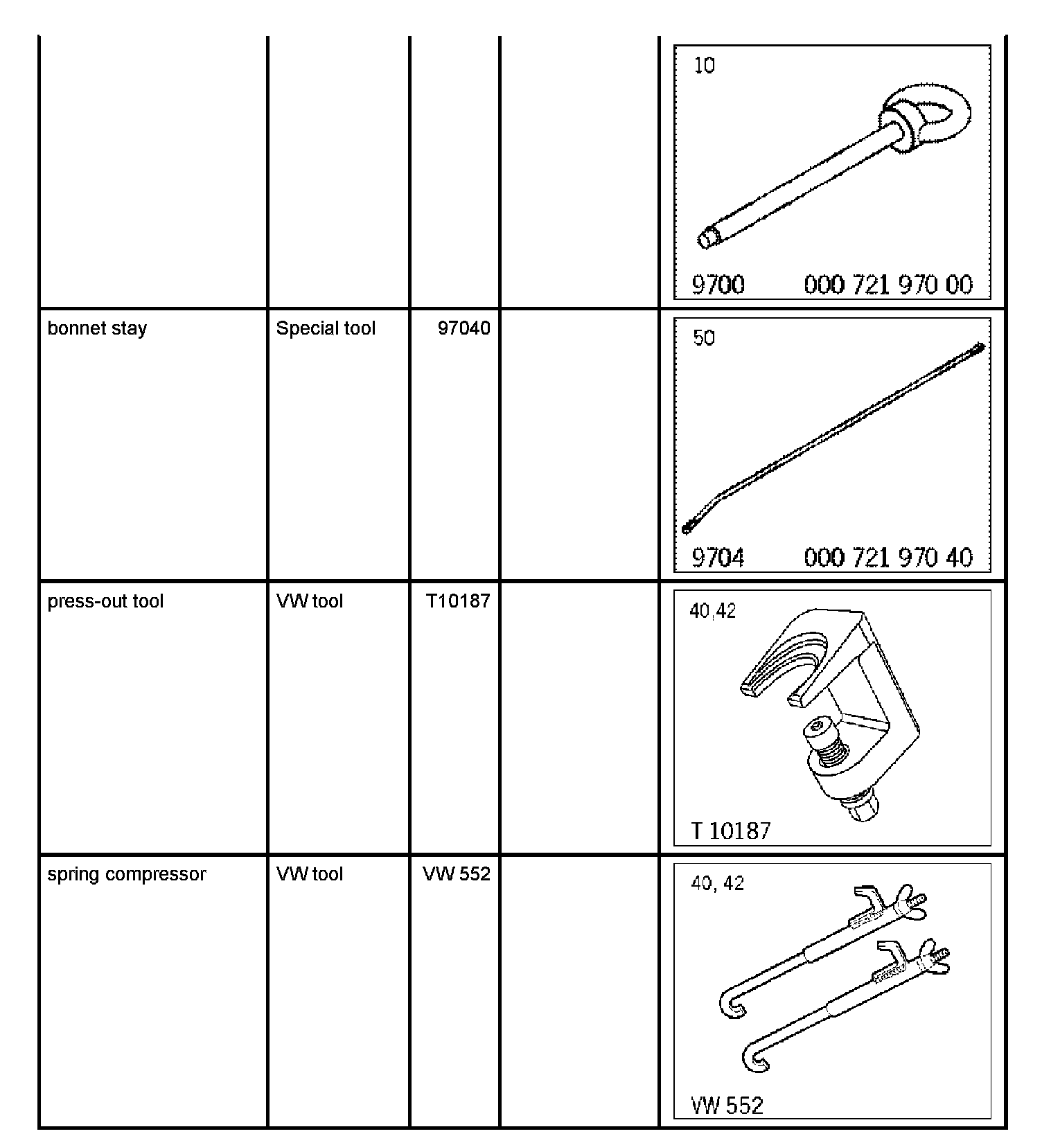 7. Fix upper axle struts with spring compressor VW 552. This involves tensioning axle strut slightly because top ball joint can otherwise get damaged. When doing this, engage the -connecting piece- into the top opening of the wheel well (double panel, under the wheel housing cover) and into the axle strut (do not disconnect the air spring connection!).