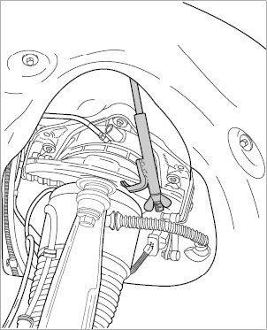 - Fix upper axle strut. The lower control arms are loosened on the front axle carrier and remain with the spring struts in the vehicle.