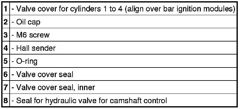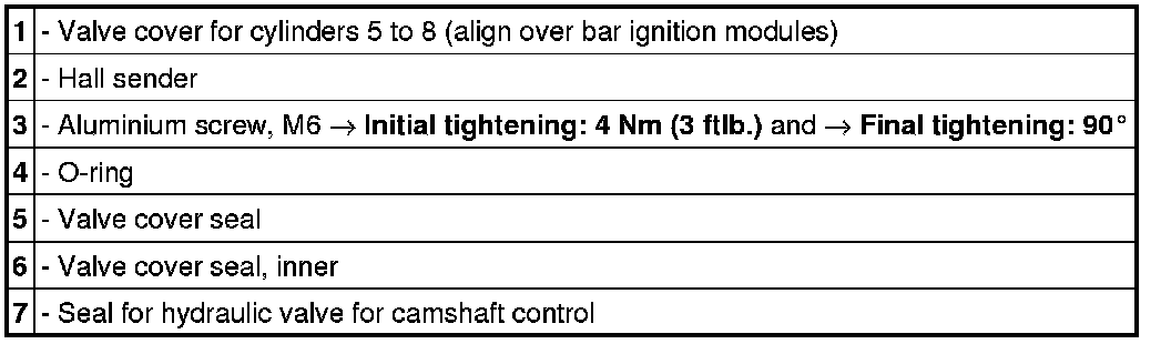 Always read the information concerning modified tightening specifications and component changes relating to repairs provided for specific engine numbers in the Information section -> 1001IN IMPORTANT component changes for V8 engines as of October 2008 1001IN IMPORTANT component changes for V8 engines as of October 2008.
