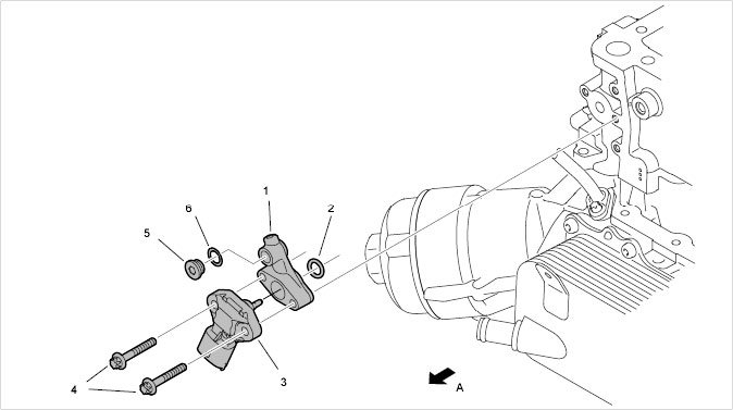 3. Remove oil pressure sensor (oil pressure sender) with adapter -3 and 1-. To do this, remove the two screws -4- and pull the components straight off. Replace sealing rings.