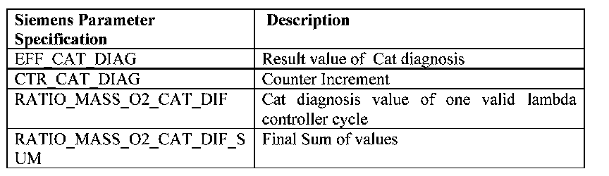 The diagnostic function which is used for monitoring of the catalyst efficiency is based on measure of the oxygen within the catalyst determined by the upstream and the downstream oxygen sensor. If all monitoring conditions are fulfilled, then a special defined A/F-modulation will be done. The relation of the deviations between the current downstream-sensor-signal to the average value of the downstream-sensor-signal is a sign for catalyst condition. The catalyst system is considered malfunctioning, if after a specified number of monitoring cycles the average of the ratios exceeds a threshold. The corresponding fault code is stored.