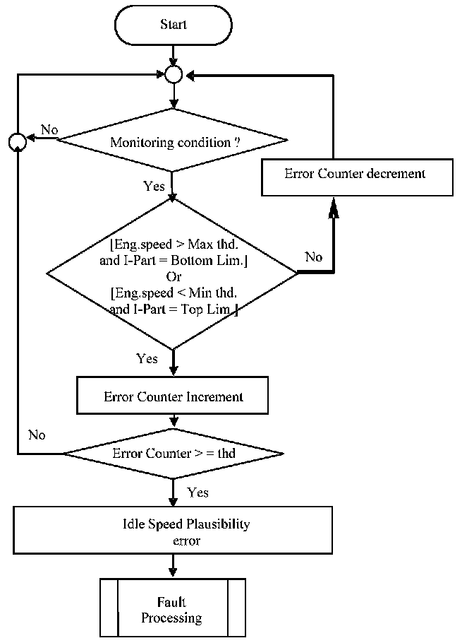 This diagnosis detects the stability of the idle speed. If the commanded idle speed and the actual idle speed is not within a calibrate able value, above or below commanded, in spite of an activated idle speed controller the idle speed is considered to be out of range.