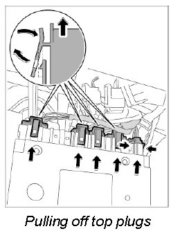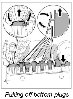3. Release and remove bottom plugs. Pull control unit completely out of the holder.
