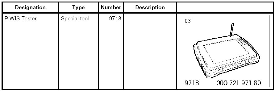 PIWIS Tester 9718 with test software version 22.000/10/2008 (or higher)