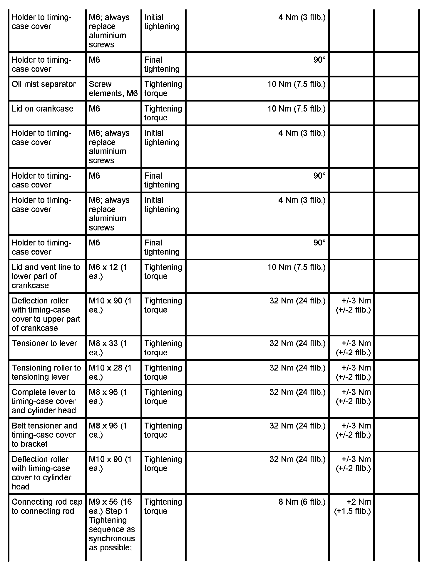 4 - Holder - Initial tightening: 4 Nm (3 ftlb.) and - Final tightening: 90 degrees
