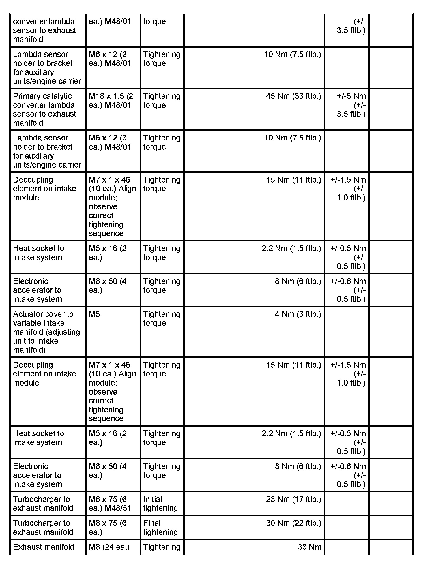 Tightening torques, tightening sequences, assembly overviews for V8 4.8 l DFI naturally aspirated and turbo engine as of October 2008
