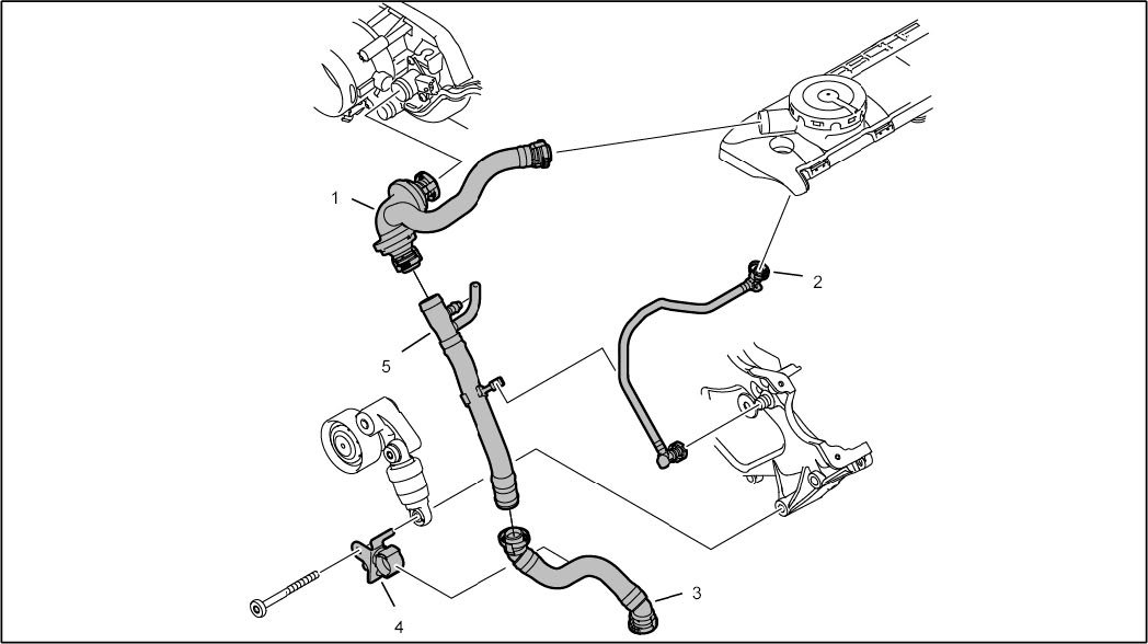 7 - Tank ventilation with holder - Initial tightening: 4 Nm (3 ftlb.) and - Final tightening: 90 degrees