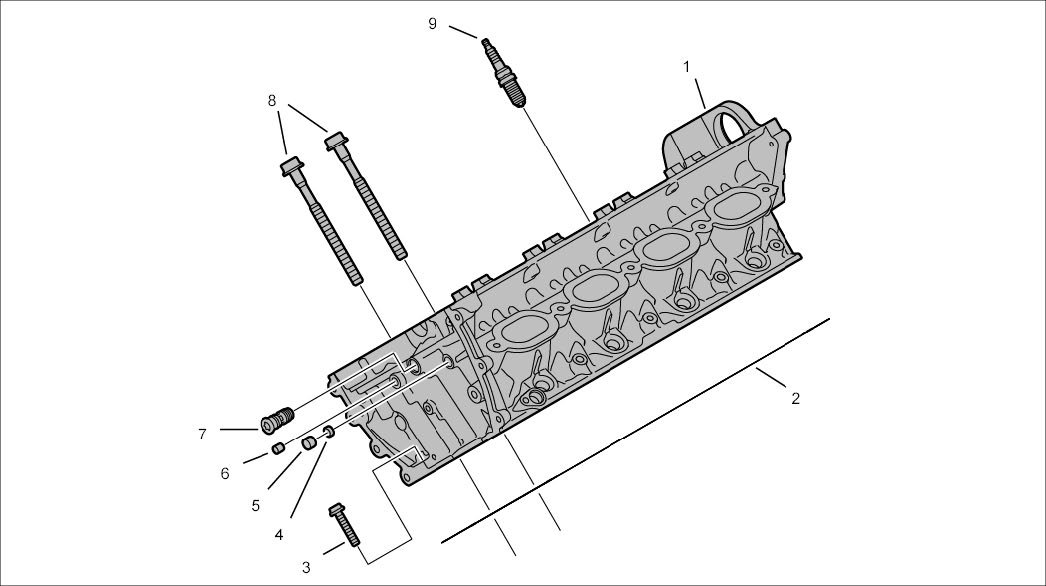 9 - Spark plug; when reinstalled - Tightening torque: 25 Nm (19 ftlb.)+3 Nm (+2 ftlb.) if fitting new spark plugs - Tightening torque: 30 Nm (22 ftlb.)+3 Nm (+2 ftlb.)
