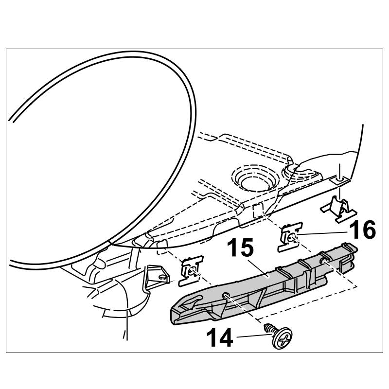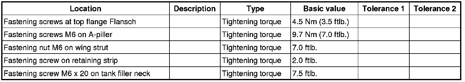 1. Clip fastening nuts -16- into place. Fix retaining strip -15- on the wing up against the stop and tighten with the fastening nuts -14-. Tightening torque => Tightening torque: 2.0 ftlb.