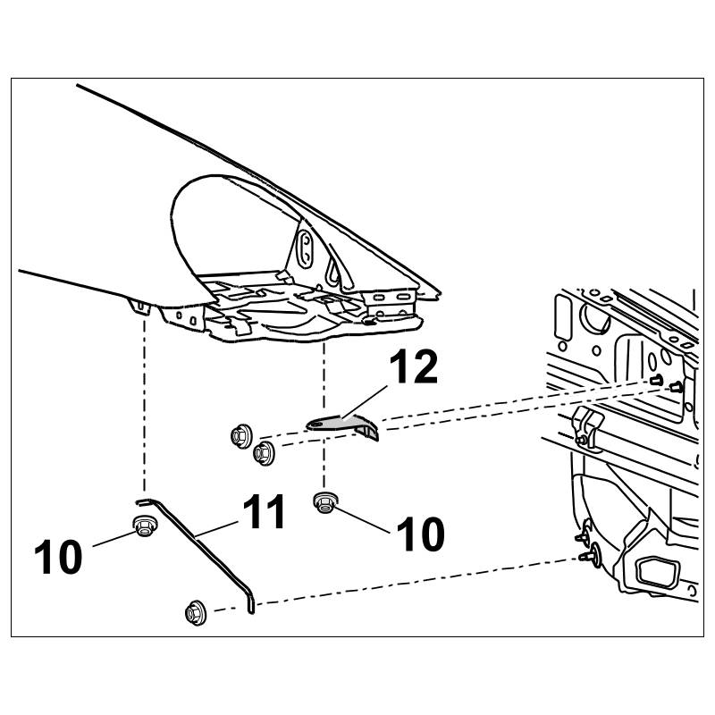1. Position wing strut -11- and bracket -12- on the body and tighten with fastening nuts -10-. Tightening torque => Tightening torque: 7.0 ftlb.