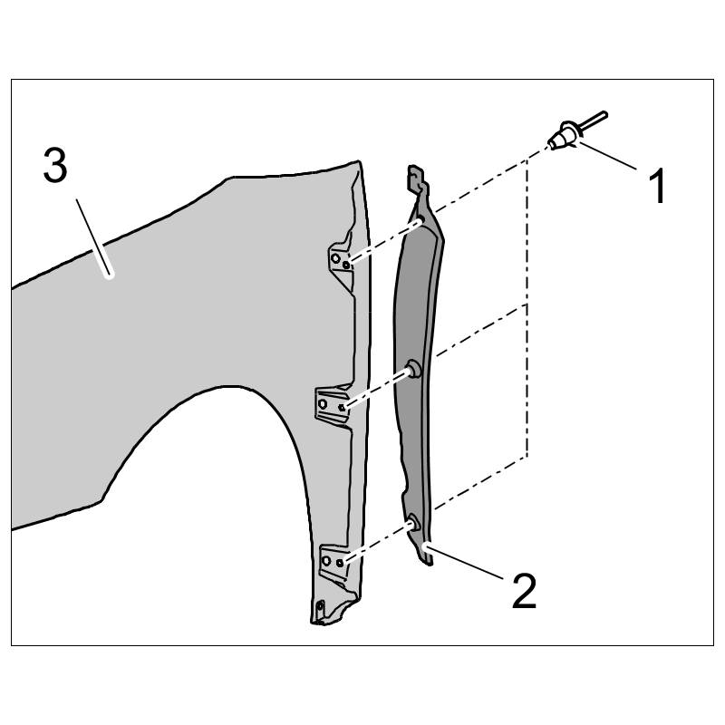 1. Press out pin from plastic expansion rivet -1- and remove masking panel -2- from wing -3-.