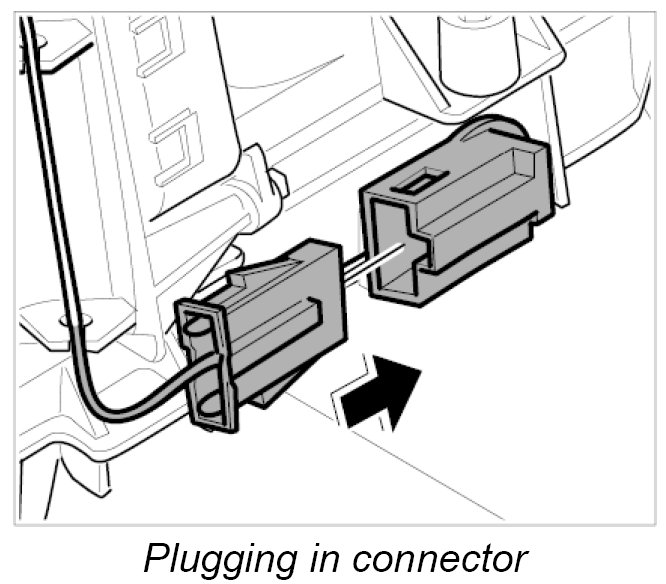 2. From the driver's side, reach around to the "driver's footwell" air vent to release and disconnect the electrical connector -a-.