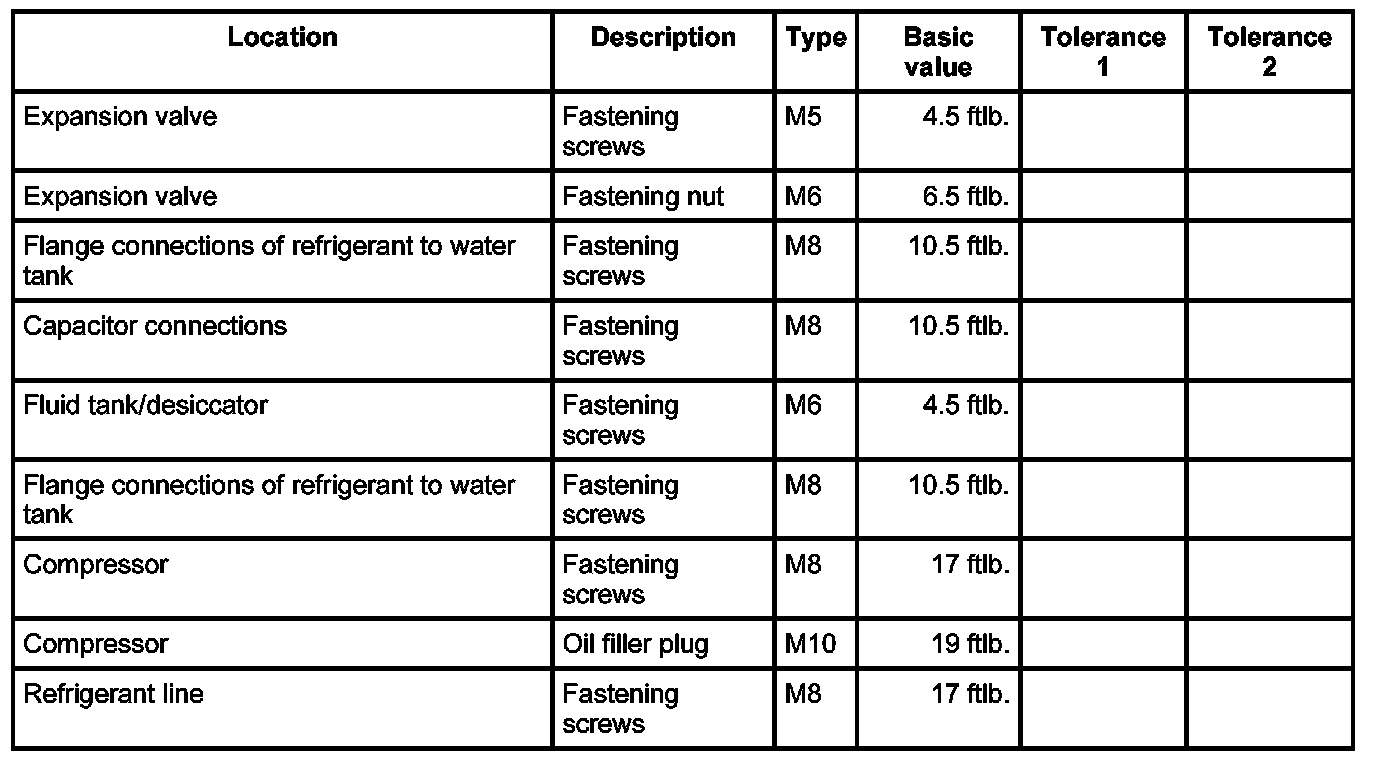 Tightening torques for air-conditioning system