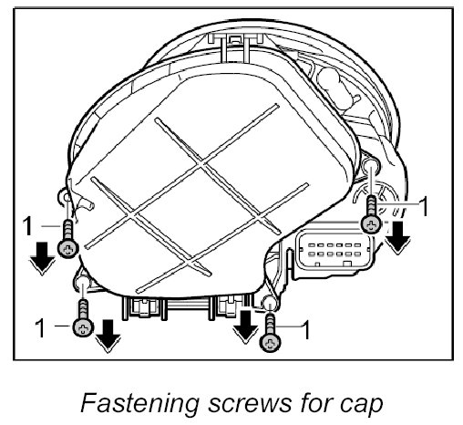 1. Unscrew four fastening screws -1- from the cap.