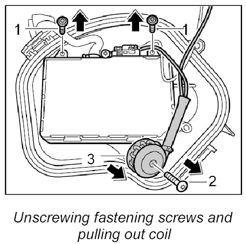 1. Unscrew the fastening screw -2- for the coil and pull the coil -3- out of the cap.