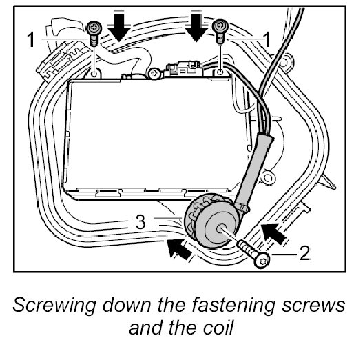 3. Push on the coil and screw it down with the fastening screw.
